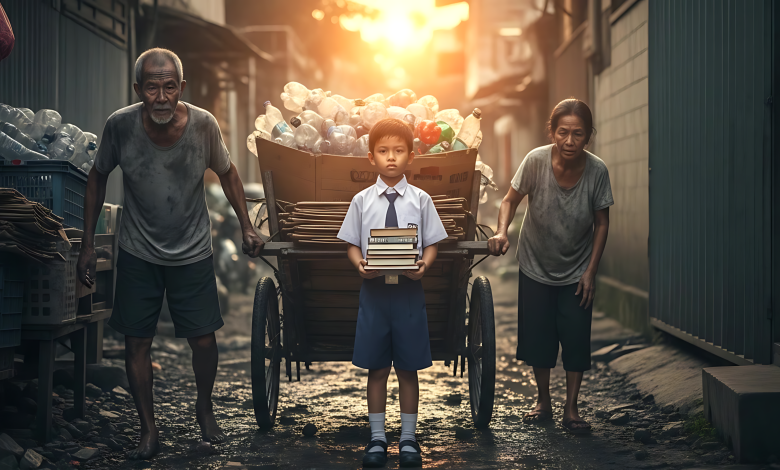 Ang mga magulang ko, sina Tatay Ruben at Nanay Rosa, ay mga tagakolekta ng basura. Araw-araw, bago pa man sumikat ang araw, hinihila na nila ang kanilang lumang kariton. Hinahalukay nila ang mga basurahan ng mga mayayaman upang maghanap ng plastik, bote, at mga lumang karton na maibebenta sa junk shop.