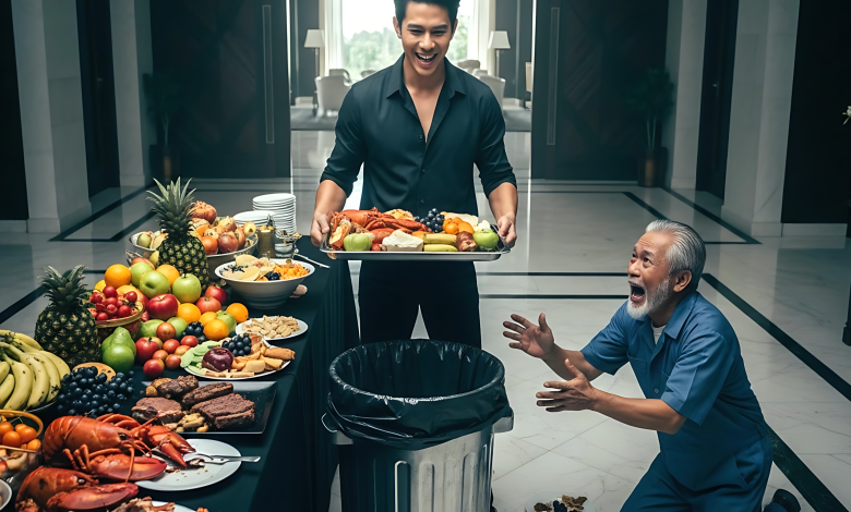 Sa harap mismo ni Mang Tomas, kinuha ni Lance ang malaking tray ng mga buong steak at lobster at walang awang ibinuhos ito sa basurahan.