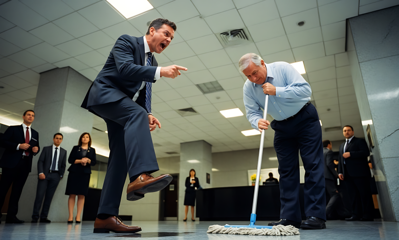 SINIGAWAN AT PINALAYAS NG DIRECTOR ANG JANITOR DAHIL NAPATAKAN NG TUBIG ANG KANYANG MAMAHALING SAPATOS—MAKALIPAS ANG ISANG ORAS, NAMUTLA SIYA NANG PUMASOK SA BOARDROOM ANG “JANITOR” BILANG BAGONG MAY-ARI NG KUMPANYA.