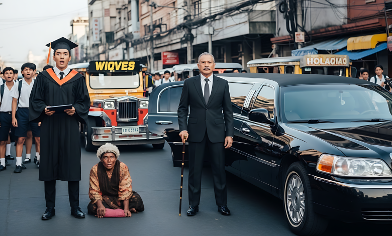 Nagulat ang lahat ng estudyante, lalo na si Greg na nanlalaki ang mata. Ang “pulubi” sa gate ay nakasakay sa limousine?!
