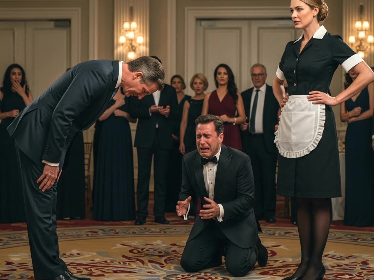 KINUHA SIYANG JANITRESS NG EX-HUSBAND NIYA PARA IPAMIYESTA ANG “PROMOTION” NITO—PERO HALOS HIMATAYIN ANG LALAKI NANG YUMUKO ANG BILYONARYONG MAY-ARI SA “KATULONG” AT TINAWAG...